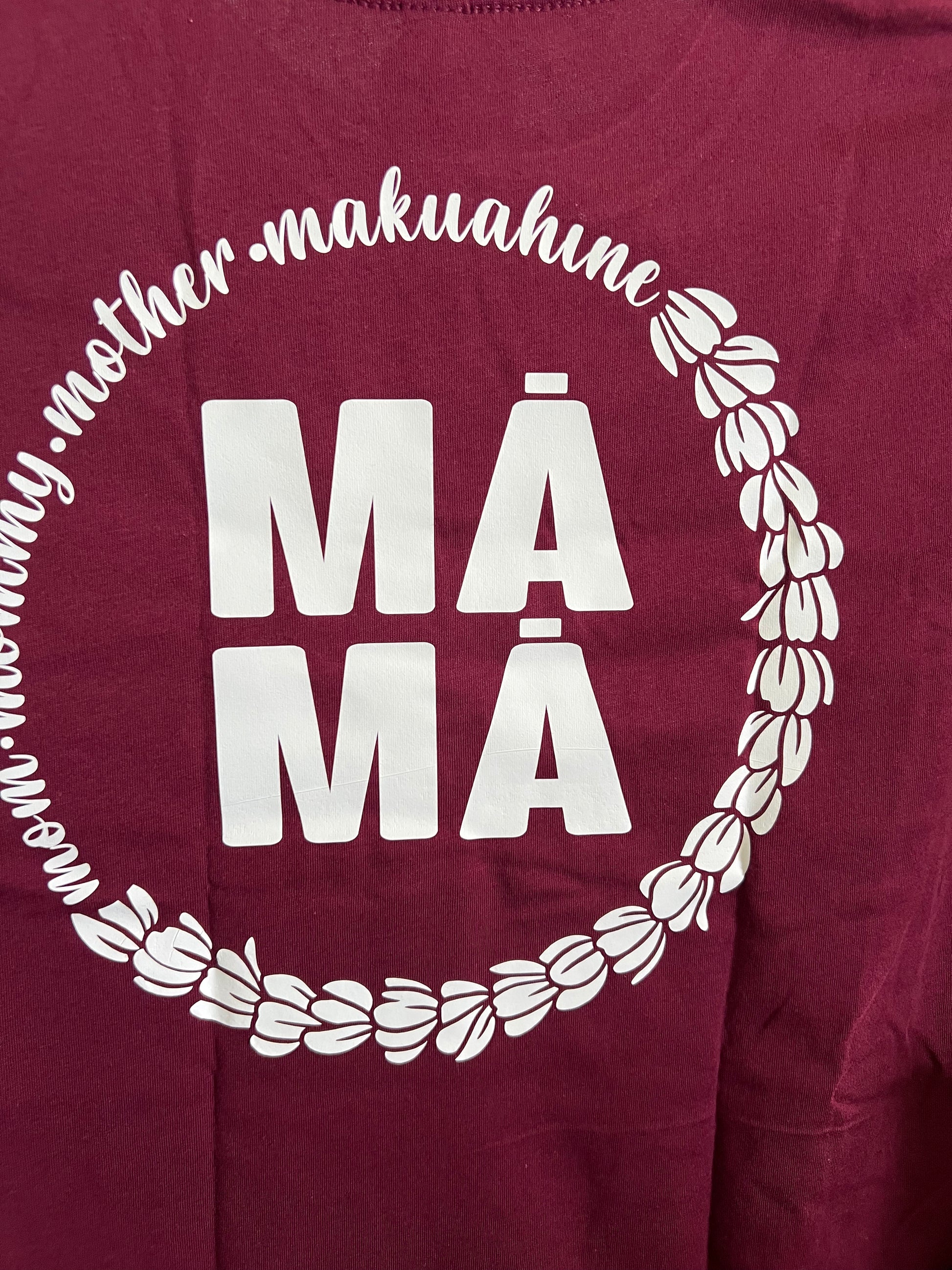 A shortened version or slang for Makuahine or mom either by birth, adoption or hanai. Mama’s play a vital role in one's family by caring and nurturing their children. They provide love, laughter, learning and listening just to name a few while doing a myriad of other things. A very special and important person in an Ohana!
